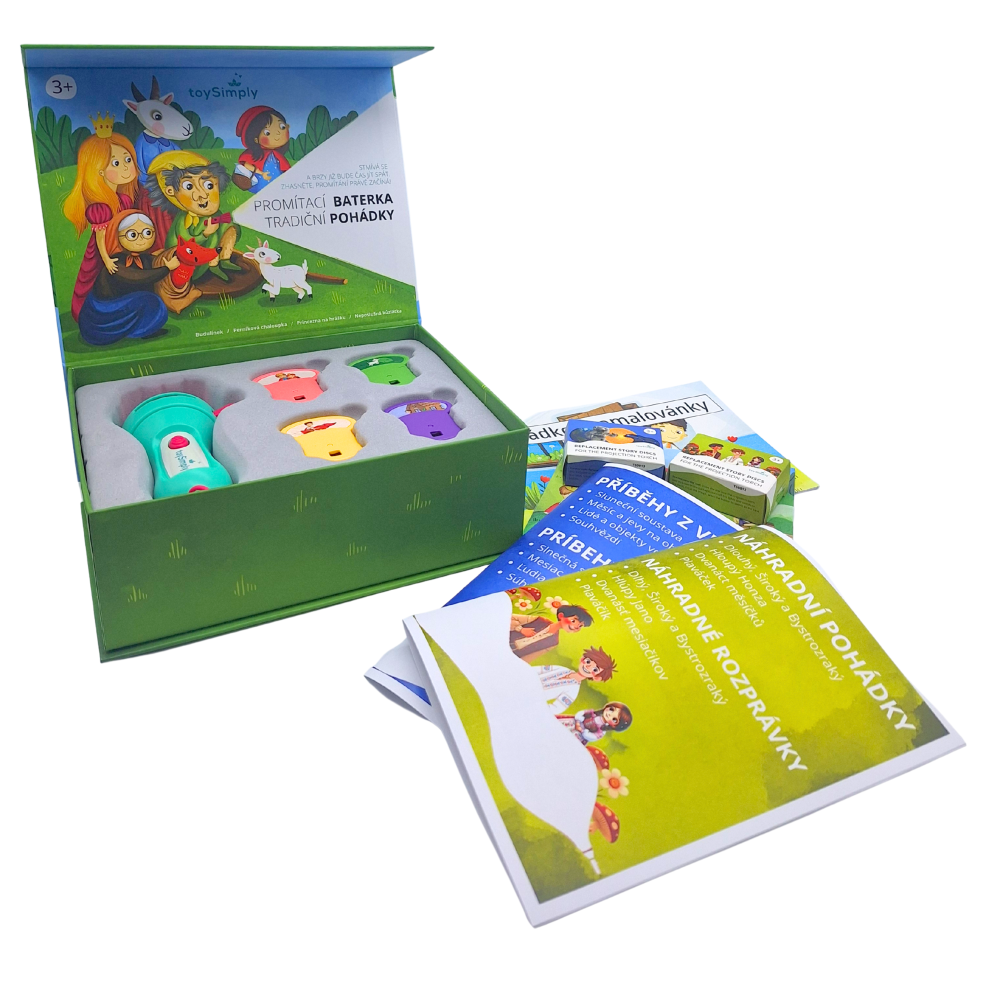 Sada originálních disket s pohádkami je určena výhradně pro promítací baterku Toysimply a přináší čtyři oblíbené česko-slovenské pohádky, které děti milují.