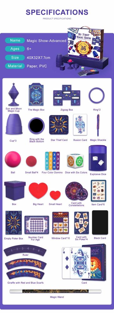 • 36 kúzelníckych trikov – ľahko vykonateľné a prispôsobené deťom.