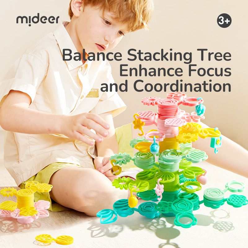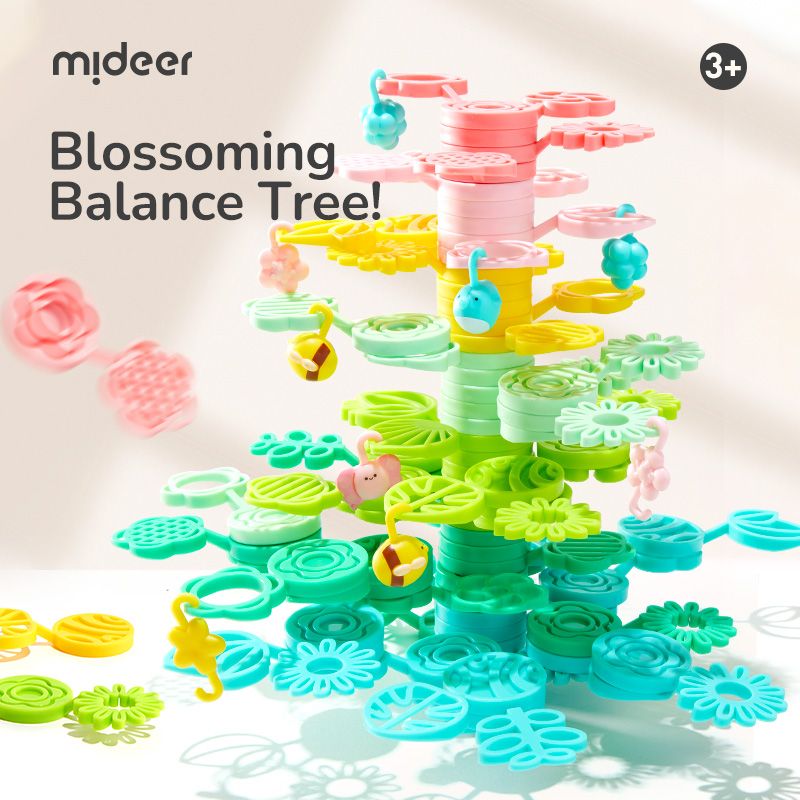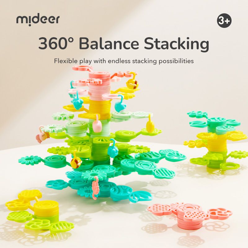 Mideer Magický strom rovnováhy je farebná sada stohovateľných dielov v tvare listov a vetvičiek, z ktorých si deti môžu postaviť svoj vlastný vysnívaný strom – vysoký, rozvetvený alebo úplne fantastický.
