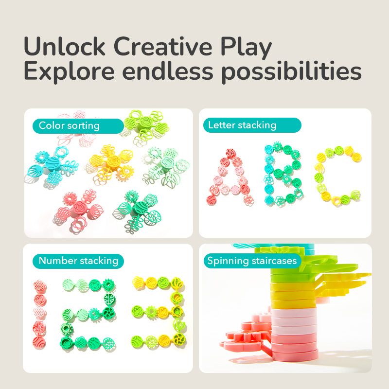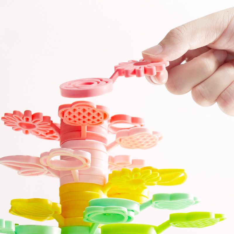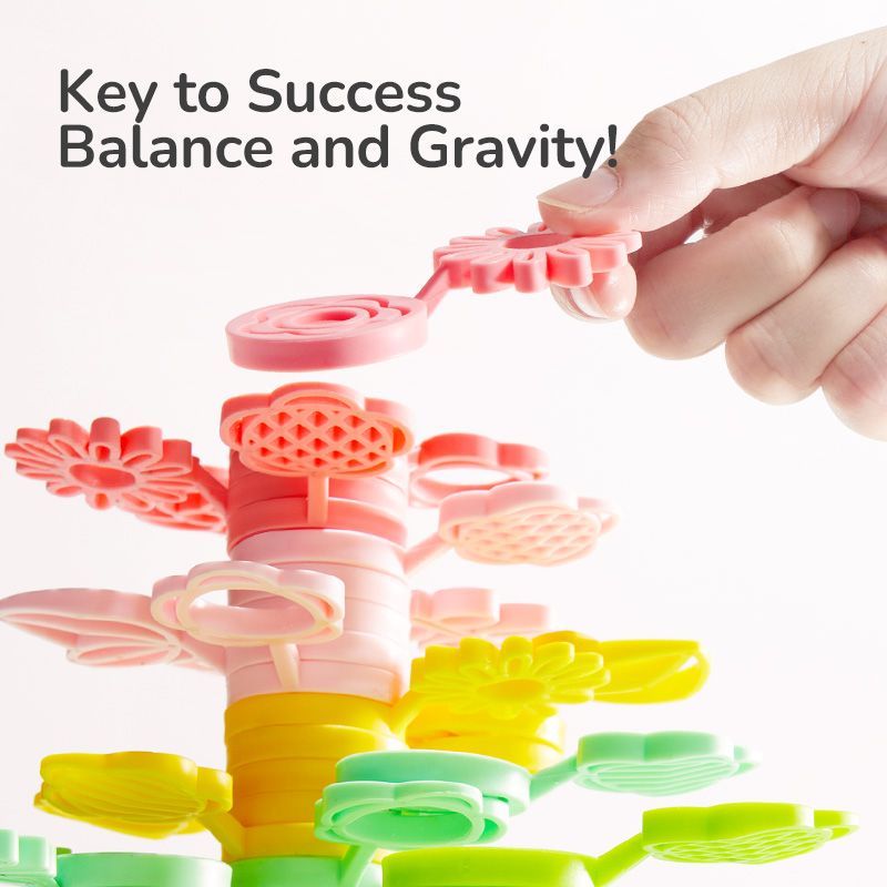 🍃 2 v 1: stavebnicová a balančná hra – Deti môžu voľne tvoriť alebo hrať súťaž, kto pridá viac dielov na strom, aby nespadol.
